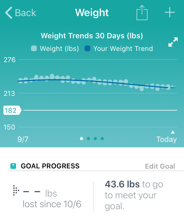 I have a fancy FitBit Wifi scale that logs all weight samples (plus fat %). This is the log from the app.