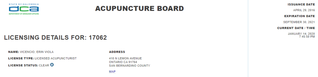This is my acupuncturist. She went to UCI for undergrad the received a Masters degree and Doctorate degree in Acupuncture and Oriental Medicine. I have no idea if the Oriental Medicine schools are any good but at least she has lots of education and is licensed!