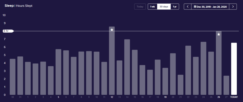 I was able to sleep from ~4:00 am to ~6:30 am before getting up for dialysis. However, that doesn’t add up to 7 hours. I looked at the sleep log and again, Fitbit though I was sleeping when I was actually at a dentist appointment. I thought I was squirming a lot in the dentist chair since it was a very painful experience but the tracker thought I was sleeping from 3:00 pm to 4:00pm. The actual dentist appointment was close to three hours. I guess I need to go in and delete that entry.
