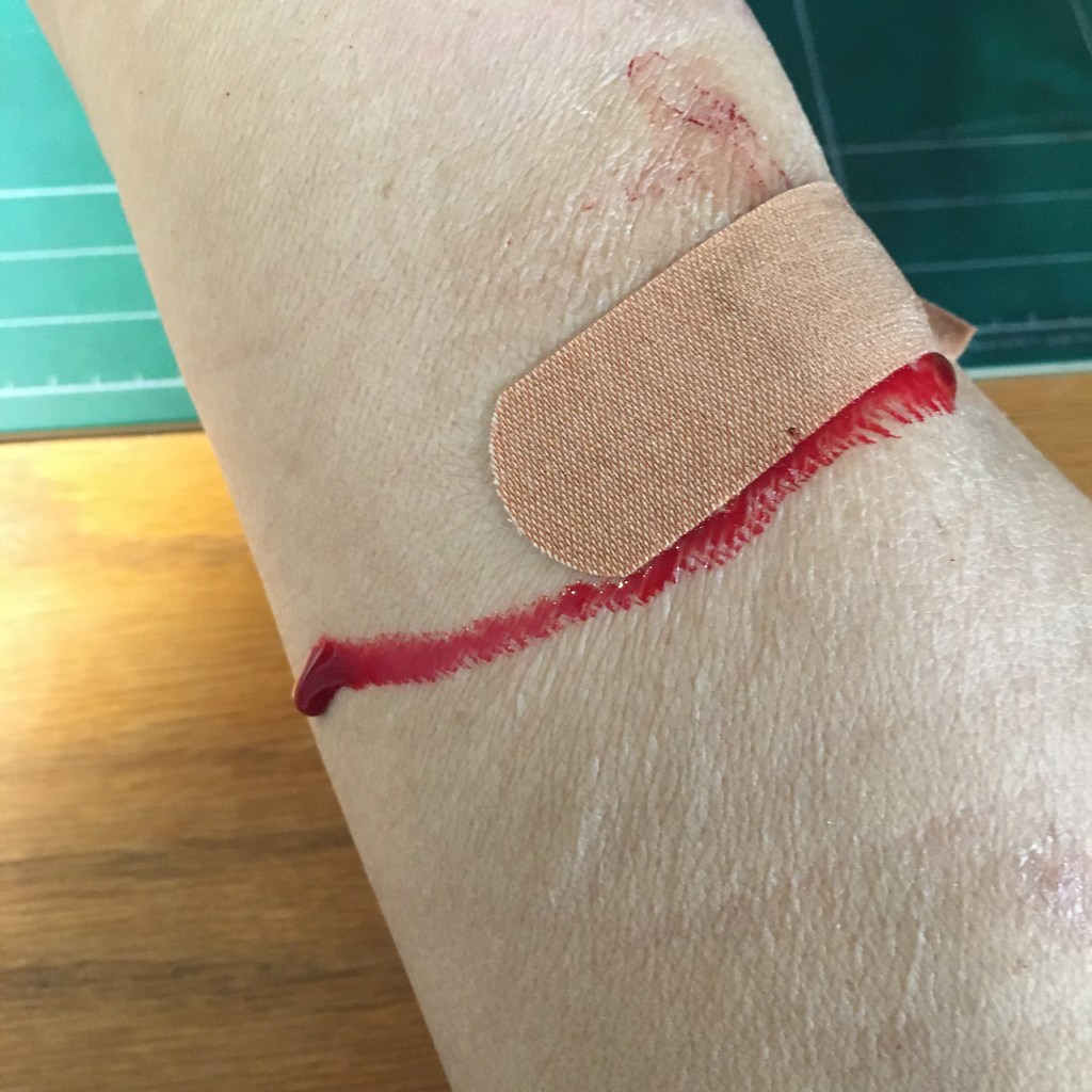 Dang it. The band-aid is on the right exit site but the blood has saturated the small gauze pad and is now leaking out. I’ll need to stop the bleeding first and change the band-aid again.