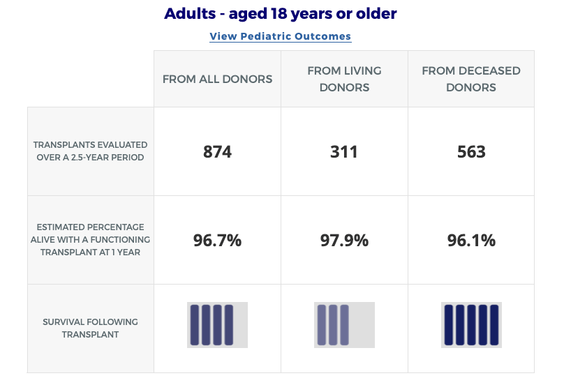On the latest report, it says UCLA has a post-surgery survival rate of 97.9% for living donor kidney transplants. That’s pretty good but useless to me if they won’t do the transplant. I would still risk it if the number was as low as 80% since dialysis really sucks. My nephrologist said they were pretty risk adverse on transplant candidate selection. It’s a research hospital… shouldn’t they be taking more risks?