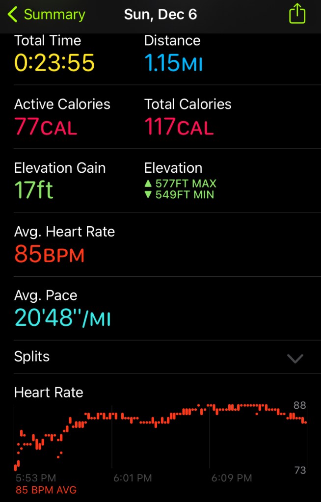 Maybe it’s because the Apple Watch is still a novelty, but I’ve walked four three days in a row since I picked it up from the Apple Store. I decided to take the local park route, even though I think Orange County is supposed to go into lockdown mode again. There were still some people in the park, most were walking their dogs. I did see a group of teenagers sitting around a picnic table without a mask in sight. Here is the Apple Fitness data: