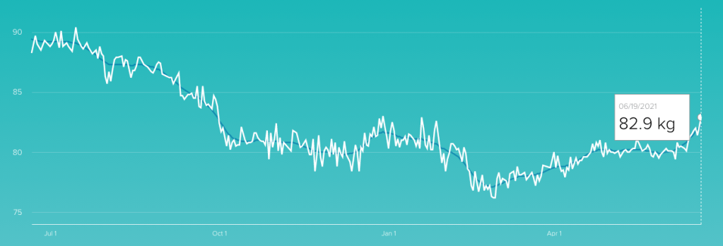 I read that many kidney transplant recipients will gain weight post surgery due to either better appetite or side-effect of medication. For me, my weight has been pretty steady at ~80 kg since the beginning of February. Recently however, I have been gaining a bit of weight, about two to three kilograms in the past two weeks. Since I am still using the Fitbit Aria scale, all my weight data is recorded online: