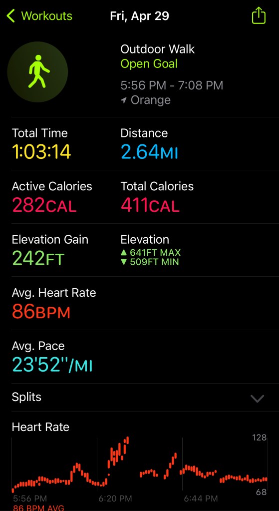 Here is the tracker data from my Apple Watch and Fitness app.