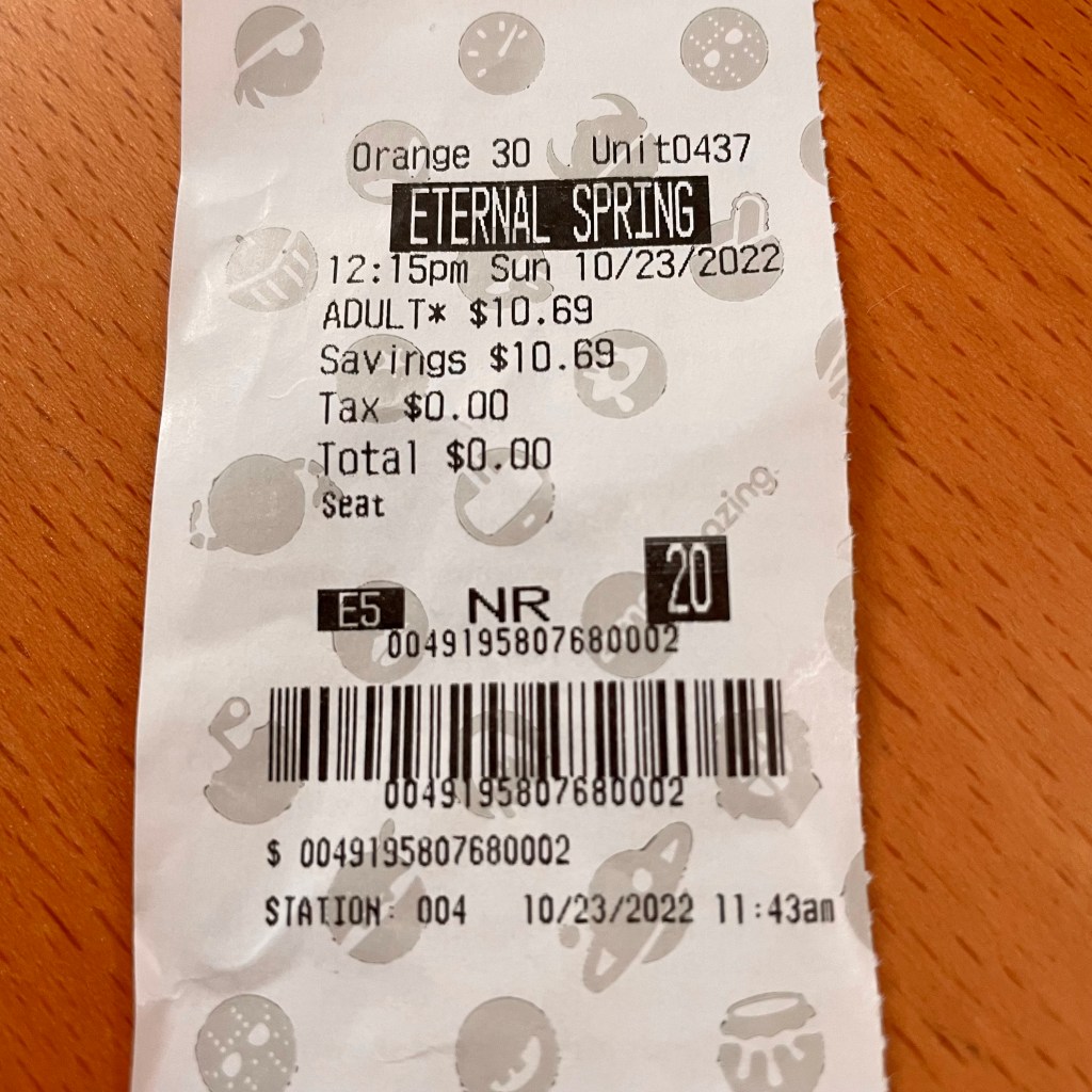 Over a decade ago, I purchased a bunch of discount AMC movie tickets from work. I thought they were lost but fortunately I found them, and they were still useable. Since this was a matinee, the ticket price was “only” $10.69; the regular adult ticket price is $15.69.