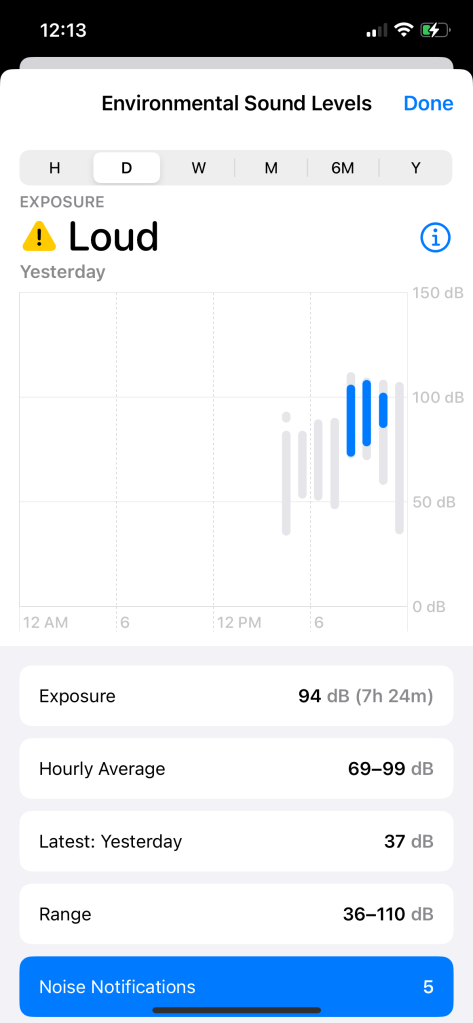 I mentioned before that the Elton John concert was very loud. I found a summary in the Health app on my iPhone.