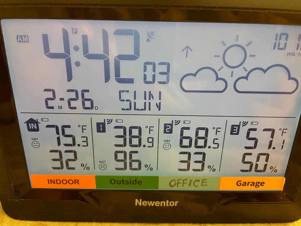 It was 38°F outside yesterday morning. I had the heat turned up pretty high since it was freezing inside the house.
