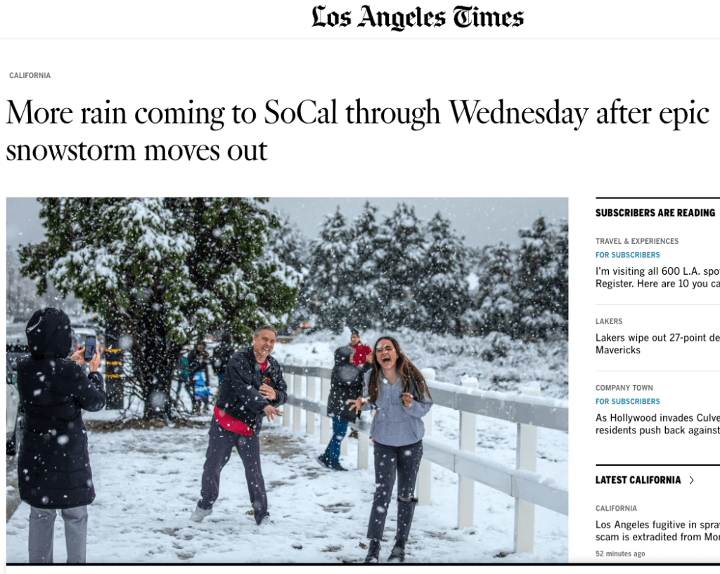 This past weekend’s weather was pretty extreme for Southern California, where our usual forecast is sunny. We had rain, wind, and even a blizzard warning, which is super rare here.