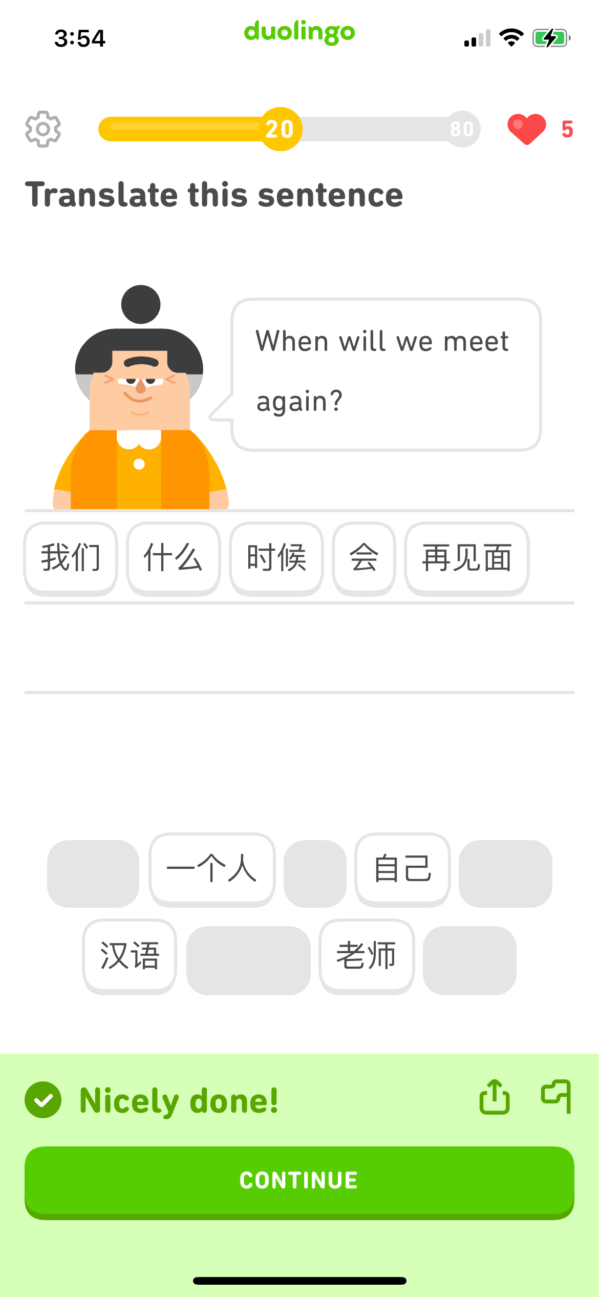I have been posting lately about being single and loss of friendship. It is affecting my mental health, and I am trying to deal with it. As a diversion, I have been doing Chinese lessons on Duolingo. I already know Chinese, but I am unfamiliar with pinyin and simplified Chinese characters since I was originally from Taiwan.