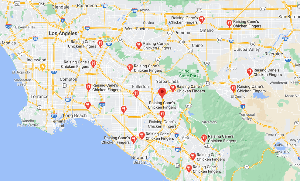 I’m sure my three readers know that I go to Raising Cane’s for lunch after dialysis a lot. I’ve been going to the restaurant in Orange on Tustin Avenue since I thought that was the closest one. I just found out there is another restaurant in Santa Ana that is a lot closer to the hospital, and a bit closer to my house. Also, if I want to get food then charge my car, it’s also close to the Tesla Superchargers at the Santa Ana Main Place. I think I’ll go try the other location tomorrow.