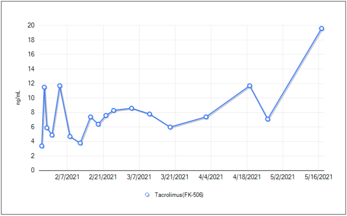 Back to my current issues with blood sugar, I am hoping that the tacrolimus is partially responsible for the difficulty I am having. Maybe if UCLA ever decreases or removes my tacrolimus dosage, or I get more used to it, my blood sugar will drop enough to stop the insulin shots. Finally, the last line in the chart above has decreased GFR attributable to tacrolimus as well. Perhaps that is causing the spike in my creatinine numbers? But if so, why now?