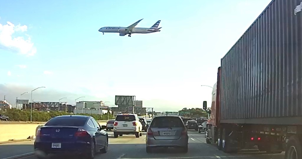 I got back to my car at around 10:00 am, and the drive home took about an hour and was pretty uneventful. Traffic northbound on the 405 was still very bad, even at 10:30 am. On the way to UCLA, an American Airlines Boeing 777 flew over the freeway right in front of me near LAX. It looked really huge in real life, but the fisheye lens on my carcam made it look small.