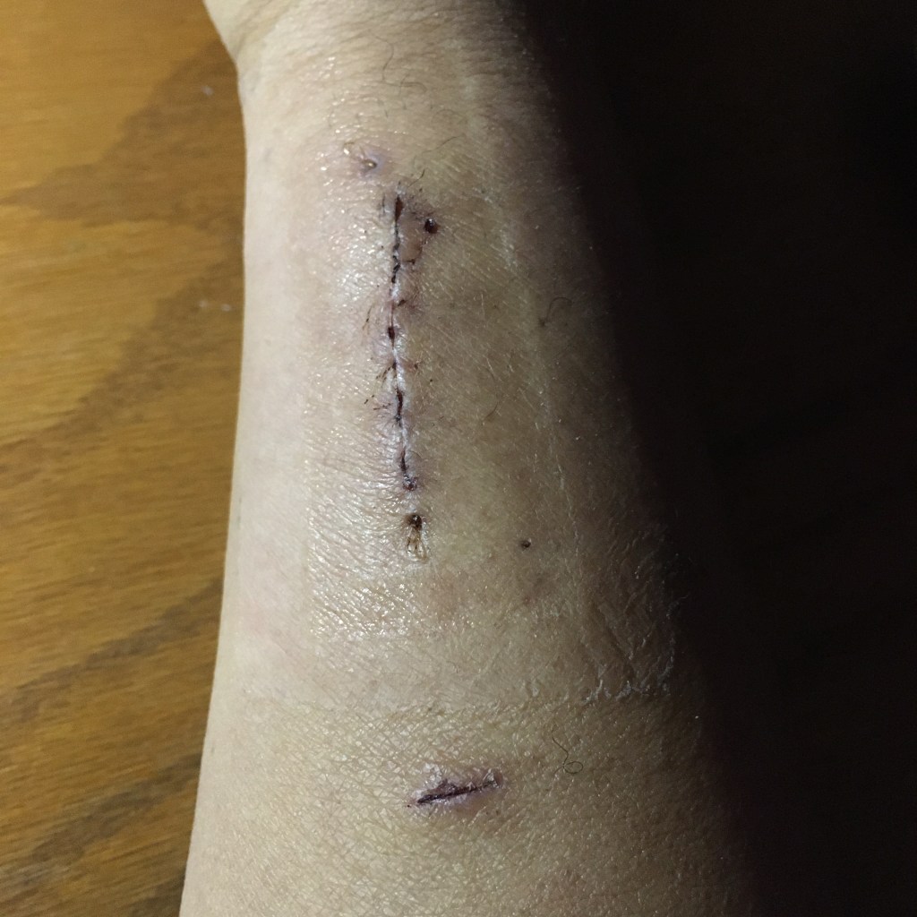 The vein splits into two further up the forearm so I’m supposed to tell the techs to use the portion between the small scar to where the vein splits. The tech told me that they would use only one needle first, which will further mature the fistula. The vascular surgeon also said that he will remove the chest catheter in his office when the fistula is fully matured. For my first chest catheter, I had to go to the main hospital to get it removed.