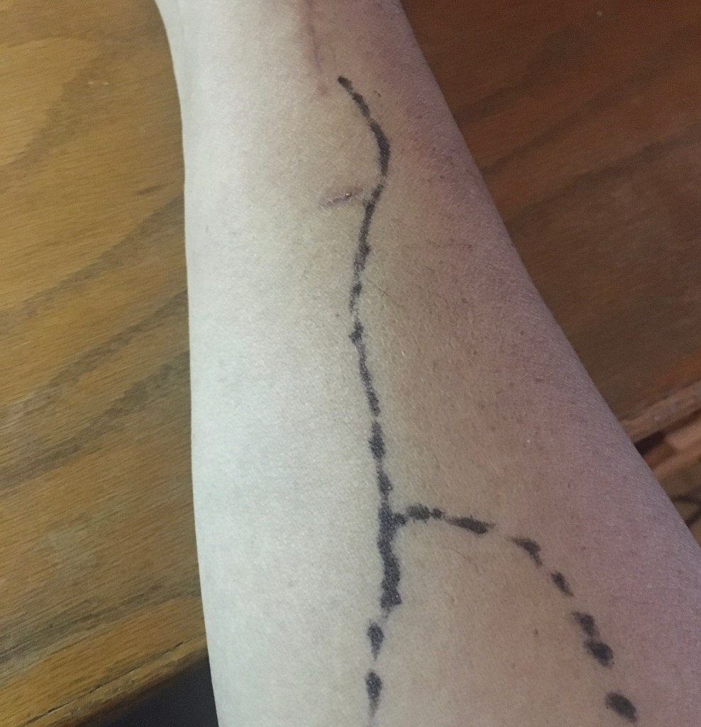 I had an appointment with the vascular surgeon that put in my fistula today. Last time I went and saw him, I had to wait over an hour. Today, the entire waiting room was packed with patients but they called me in while I was still signing in. I guess my appointment is super brief so they wanted to get me out of the way. The surgeon saw me after only two minutes and said the fistula may be ready for use. He then got a market to trace out the vein’s route through my arm so the dialysis techs know where to poke. I think I’m supposed to try using it this Thursday.