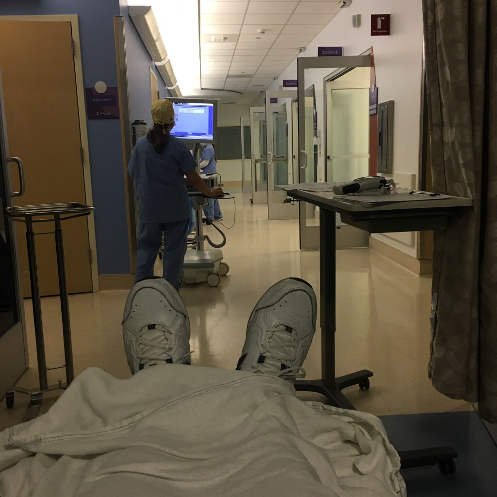 I ended up going to the hospital at 9:30 am as scheduled. My sister dropped me off since they were not allowing visitors for outpatient procedures. Check-in was pretty efficient; they came out with completed paperwork so I didn’t have to talk to the admitting person for very long. On the way back to pre-op, I saw my nephrologist doing rounds at the hospital. She was surprised to see me. I thought I was a bad sign I’m recognizing random doctors walking around in a hospital.