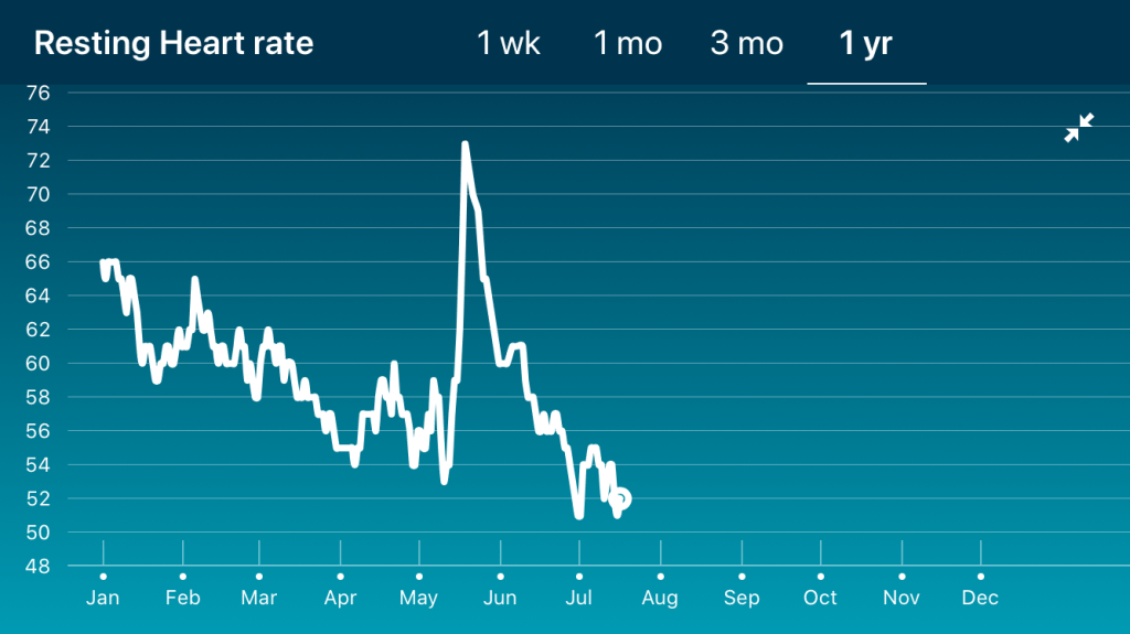 Here is my year-to-date resting heart rate as recorded by my Fitbit.