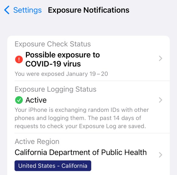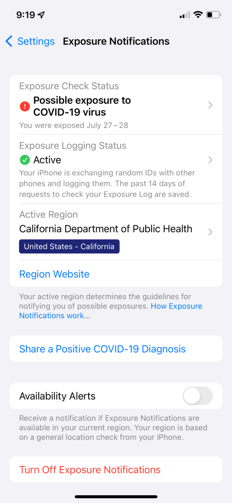 Since the notification only gives you a two-day window and no location, I have no idea where the close contact may have occurred. This system probably works better when everyone is in lockdown and not leaving their house. Since life is mostly back to pre-COVID norms, these exposure notifications are mostly useless.