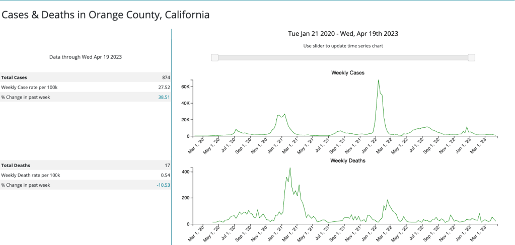 It is also harder to find data online regarding new cases. A lot of the sites I used to visit are shut down. I did get this from the OC Healthcare Agency.