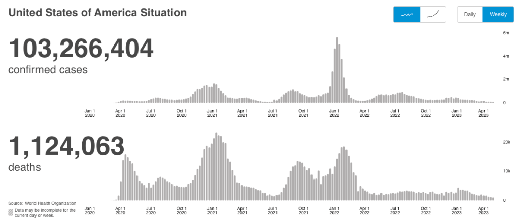 Per the WHO, there are still active cases and deaths from COVID, but just not like the past three years. This is data for the US: