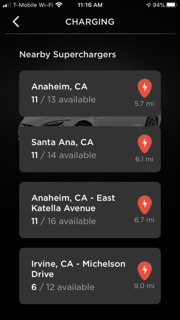 With the stay-at-home orders by the state and county, Tesla Superchargers are pretty empty. I usually get out of church service around this time (11:00 am Sunday) and local Superchargers are typically full. Here’s the status from my phone app: