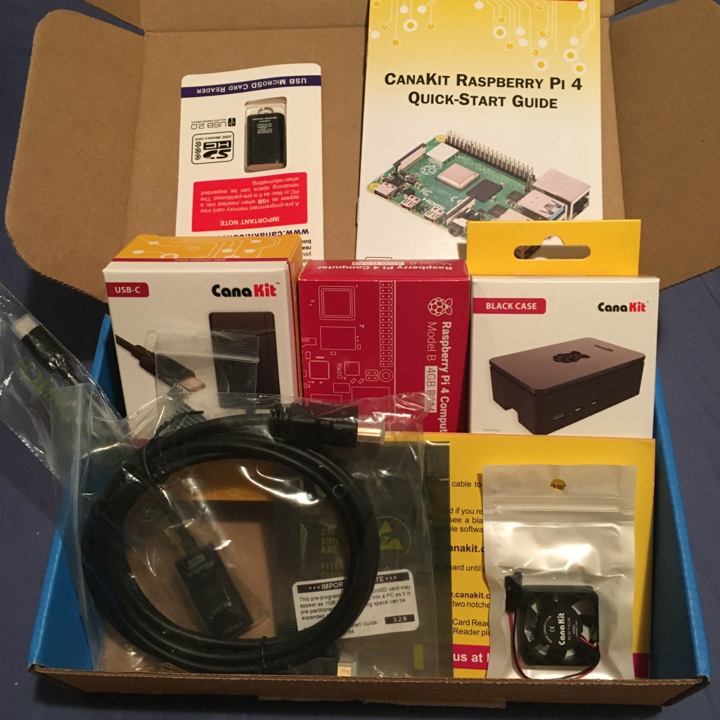 In the four weeks that I’ve been stuck at home, I haven’t learned anything new. Even old stuff I’ve abandoned; I put both of my guitars and my bass back in their cases and haven’t touched them in months. This week, I decided that since my job has to do with software systems, I may as well learn something new while stuck at home. I purchased a Raspberry Pi 4 kit from Amazon for $99. I got the kit with 4GB of RAM.